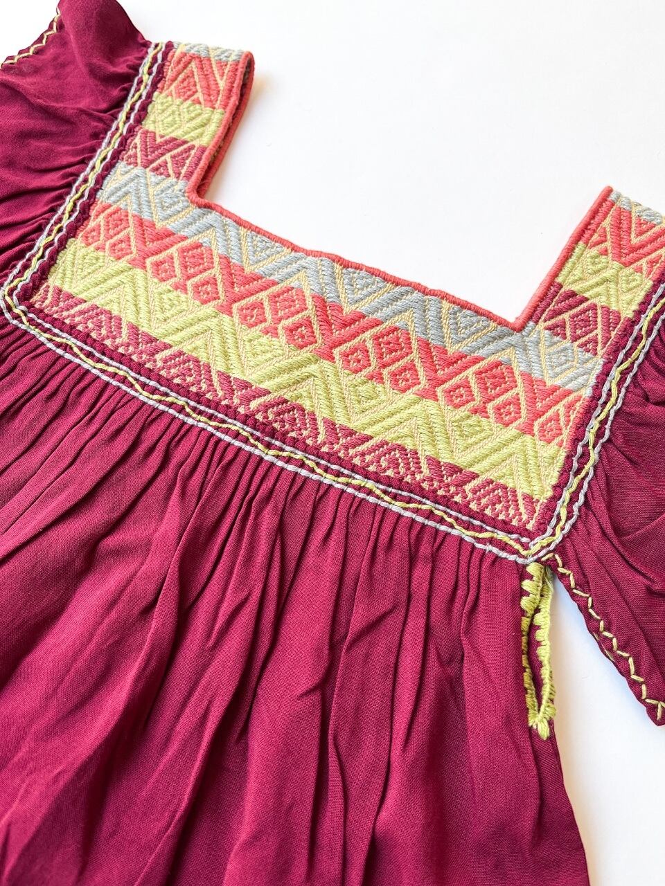 チアパス州サン・アンドレス・ララインサール村の刺繍が胸元に施されたワンピース。