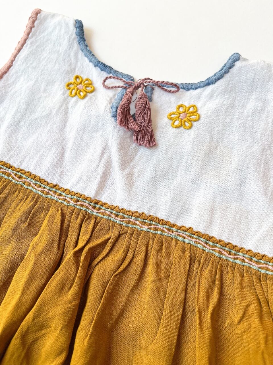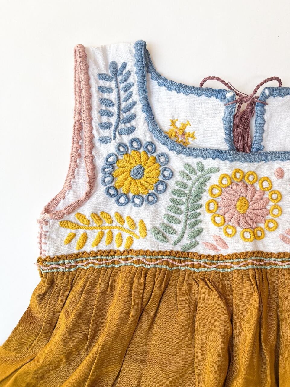 胸元にアグアカテナンゴ村の刺繍が贅沢に施されたノースリーブワンピース。