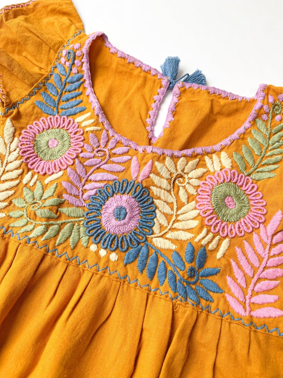 【4Y】アグアカテナンゴ ロココ刺繍ワンピース[イエロー]