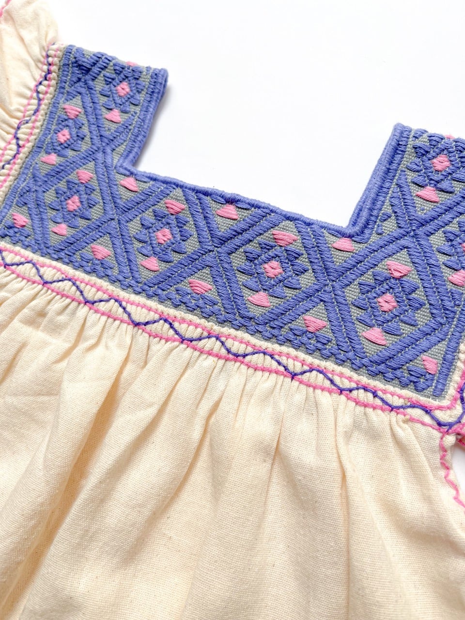 チアパス州サン・アンドレス・ララインサール村の刺繍が胸元に施されたワンピース。