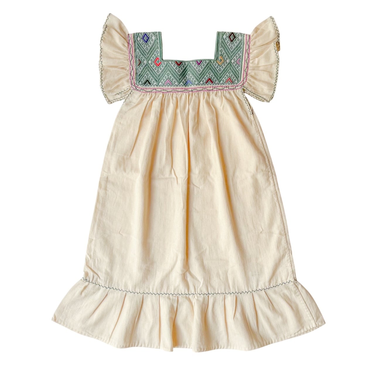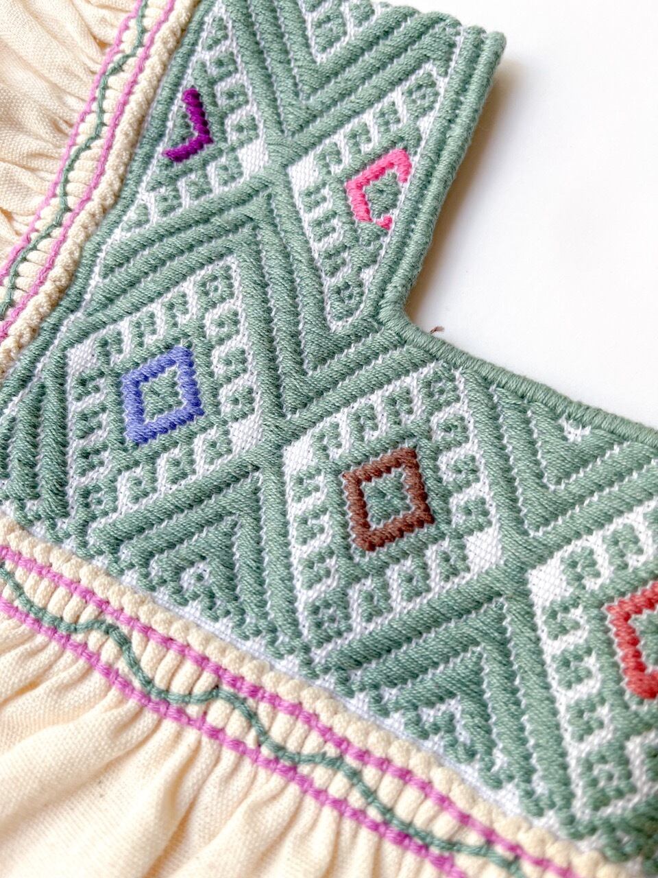 チアパス州サン・アンドレス・ララインサール村の刺繍が胸元に施されたワンピース。