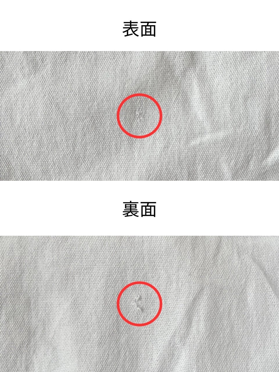 表面からはそこまで目立ちませんが、裏面から引っ掛けてしまうとほつれる可能性がありますのでご注意ください。