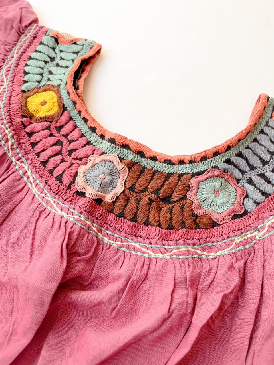 【5Y】アグアカテナンゴ刺繍レーヨンワンピース[ピンク]