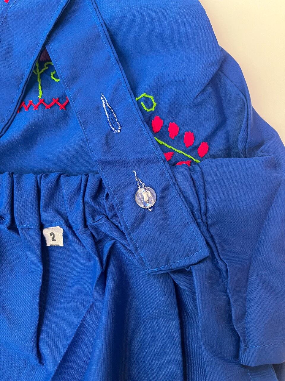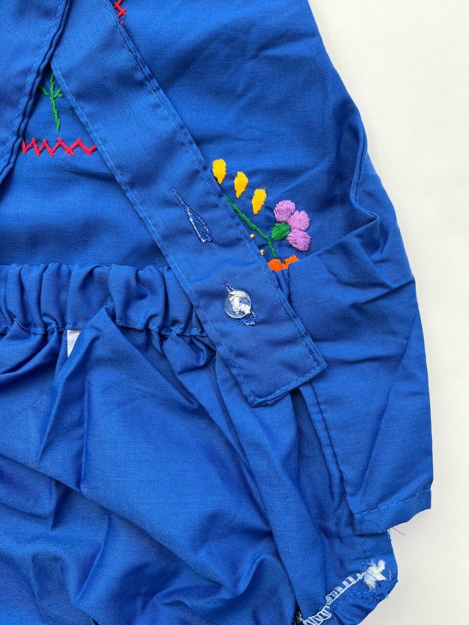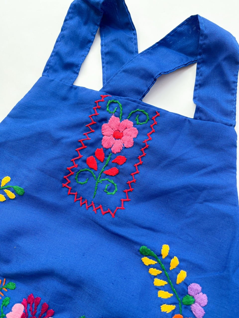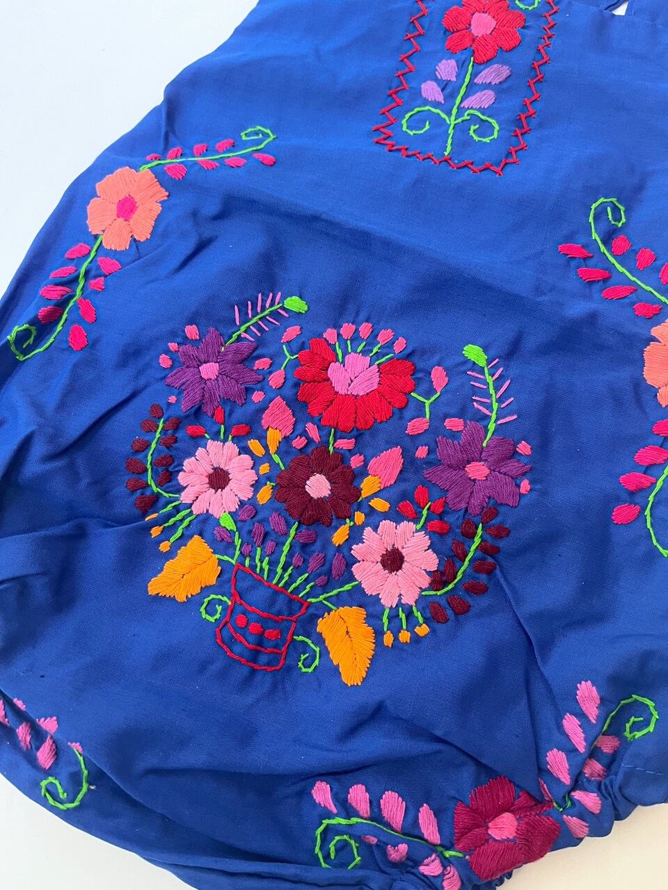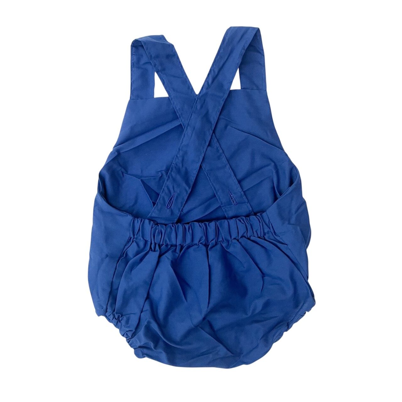 メキシコ刺繍がたっぷり施されたサロペットタイプのロンパース。