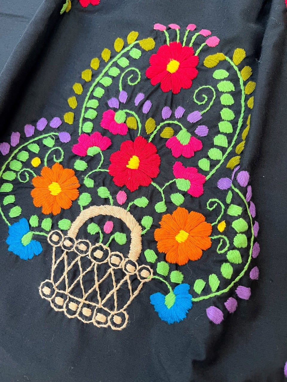 たっぷり施されたカラフルなメキシコ刺繍と首回りのステッチは全て職人さんのセンスによるものなので、一つとして同じものはありません。