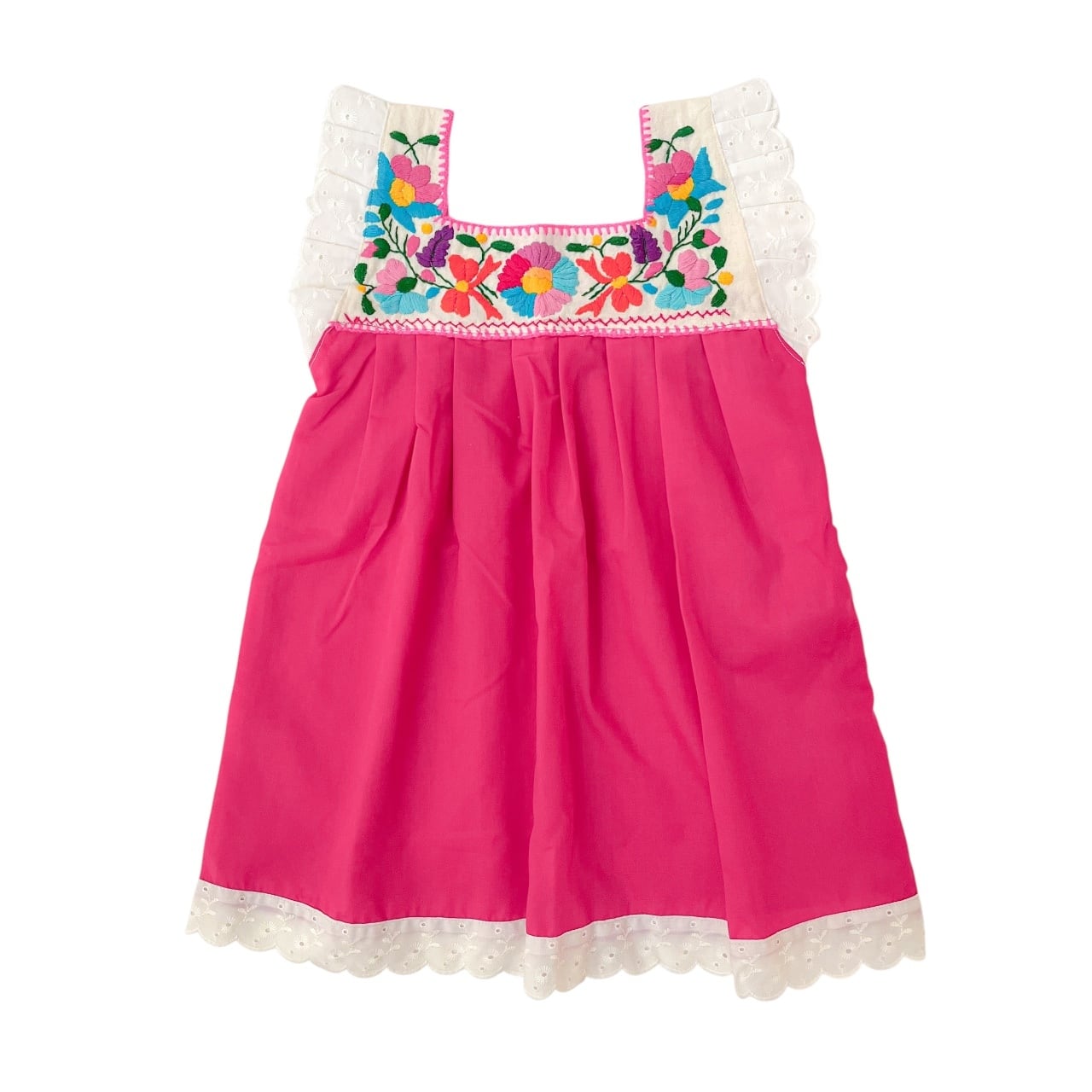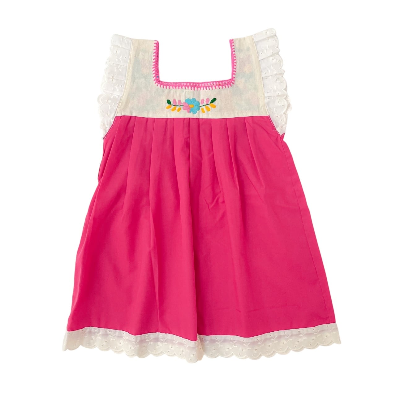 【4Y】メキシコ刺繍レース付切り替えワンピース[ピンク]
