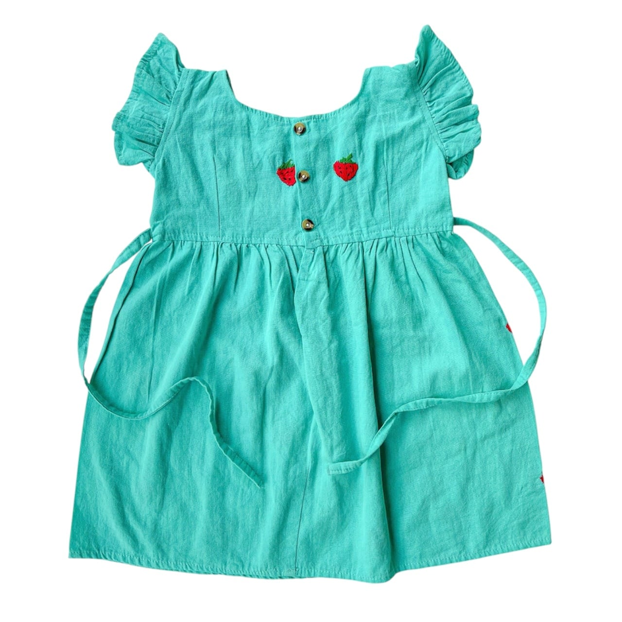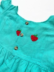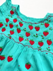 【2-3Y】オアハカストロベリー刺繍ワンピース[グリーン]