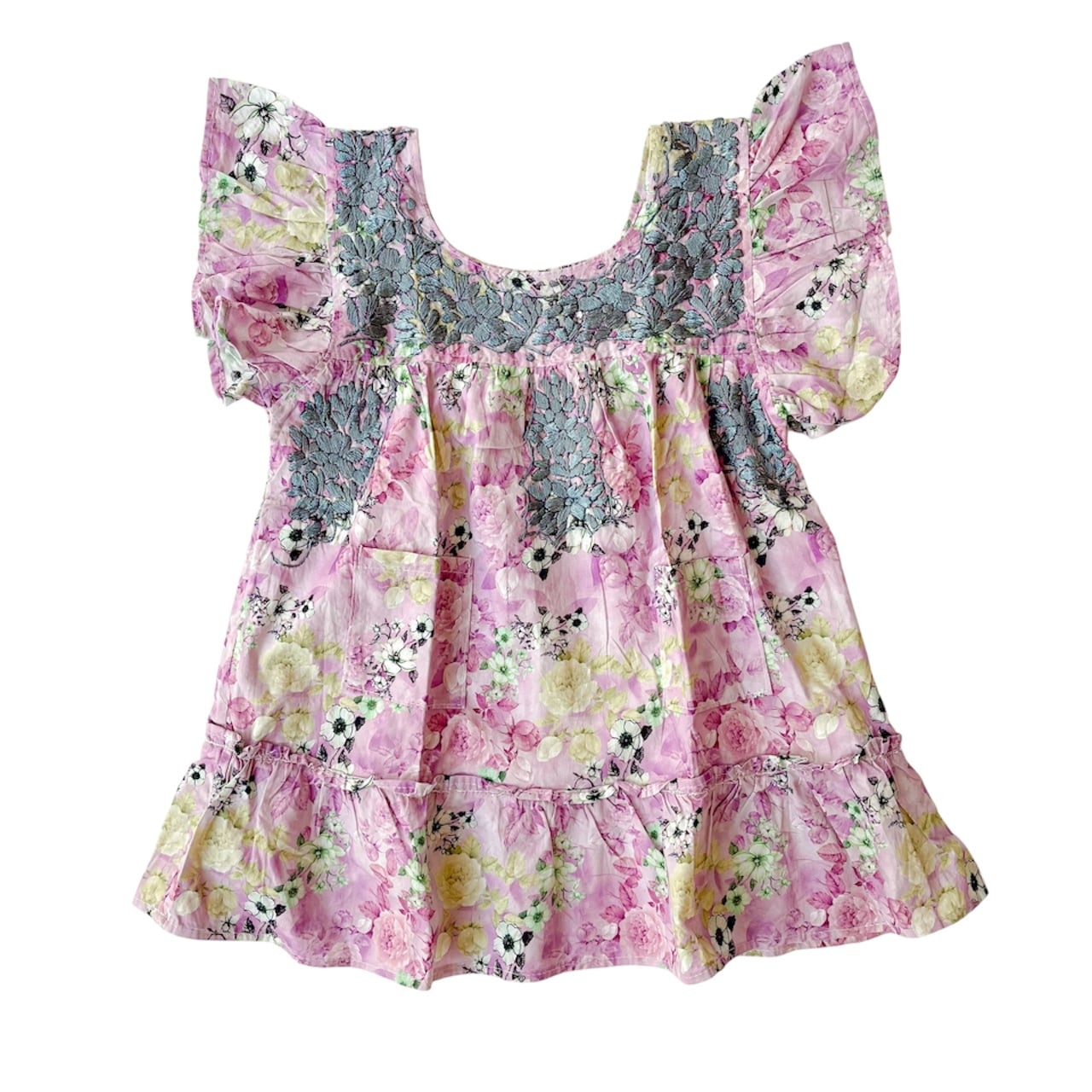 オアハカの女性たちによって手刺繍された小花刺繍が可愛いワンピース。