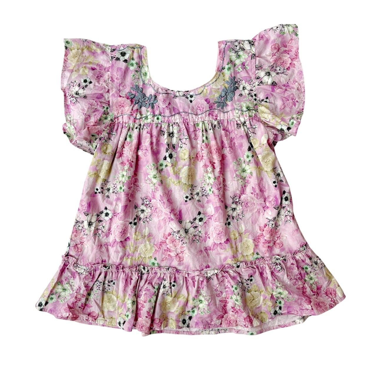 【2Y】オアハカフラワー刺繍ワンピース[パープルフラワー]