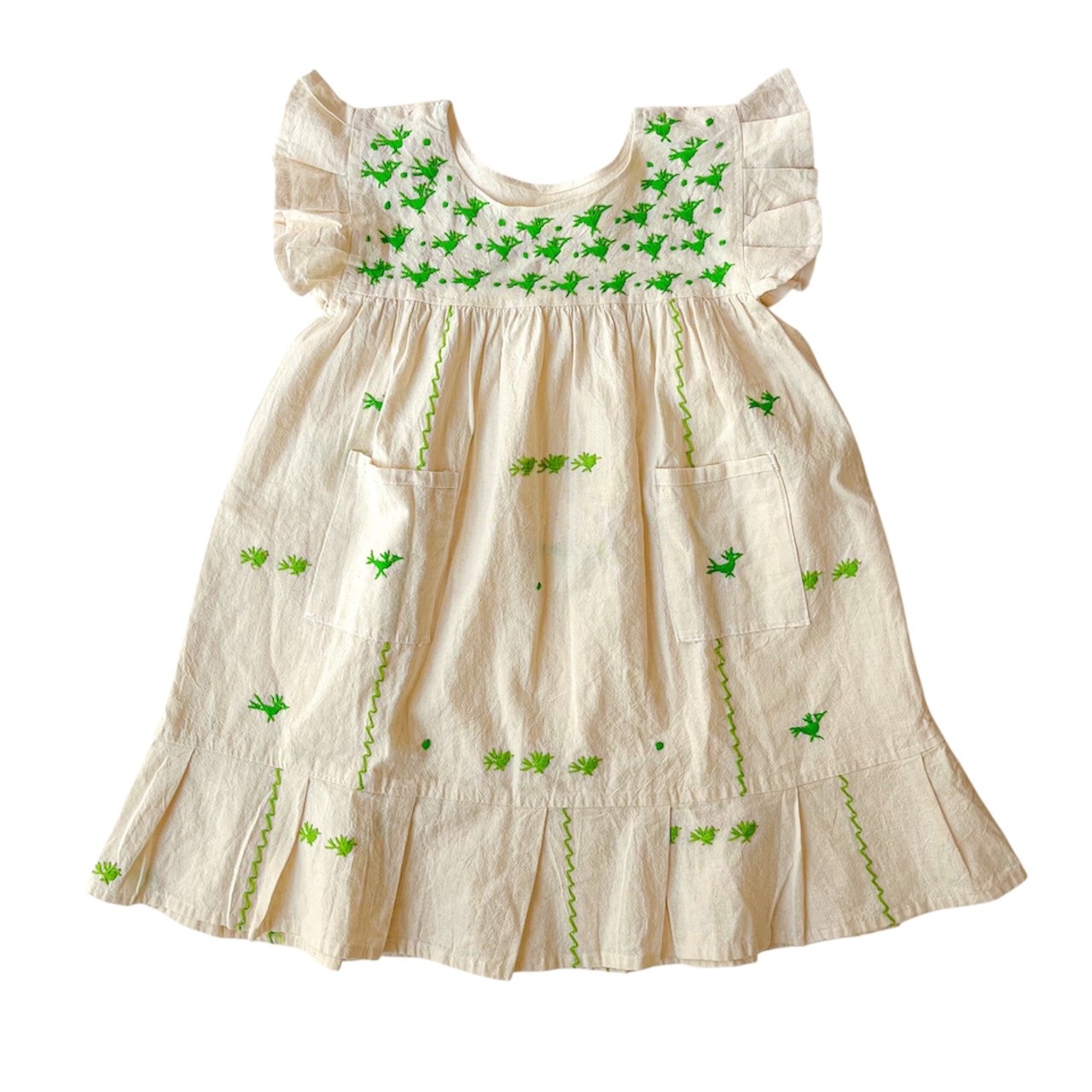 【4Y】オアハカアニマル刺繍ワンピース[生成り]