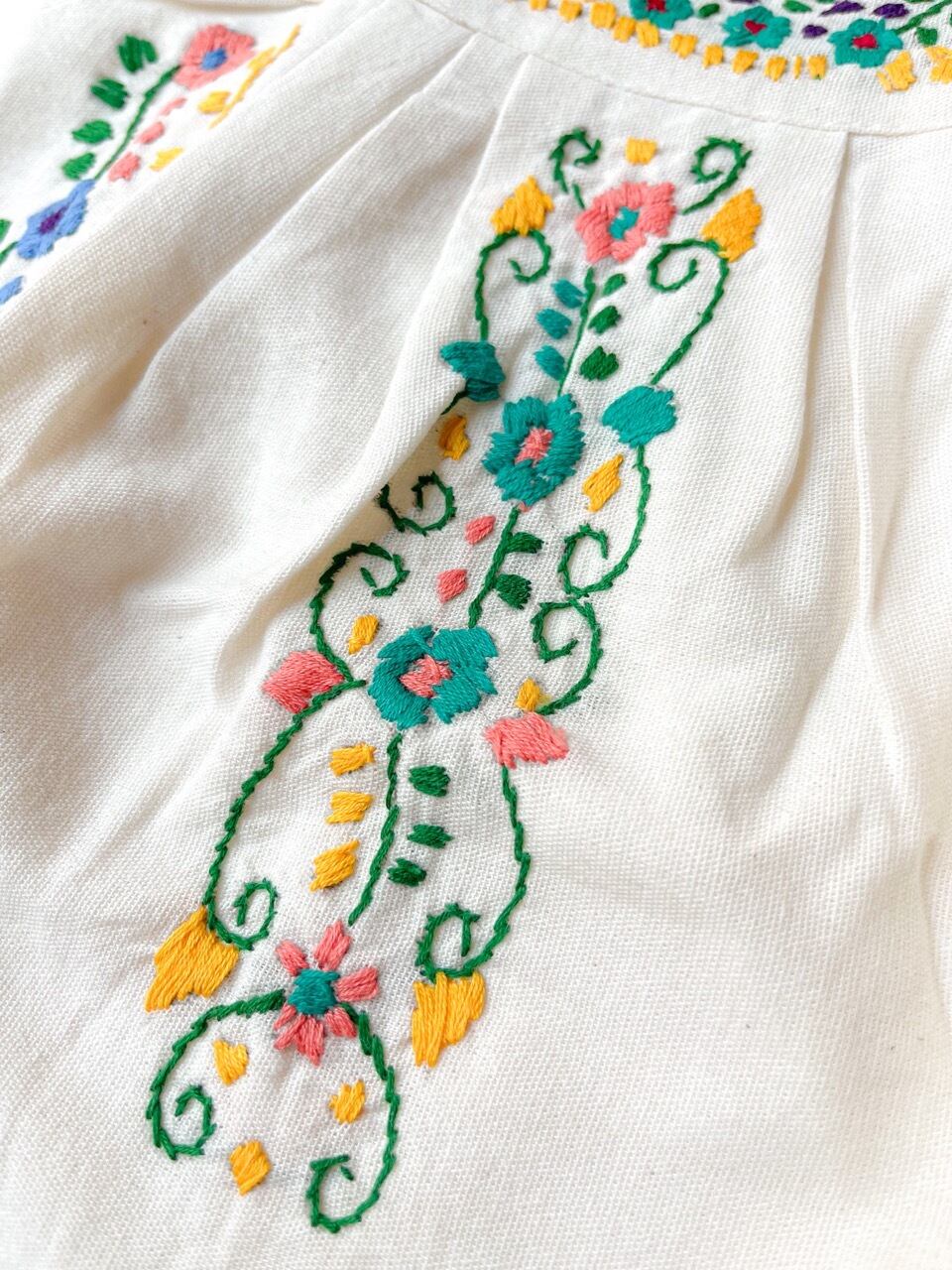【1-8Y】メキシコ刺繍マリポサワンピース[生成り]
