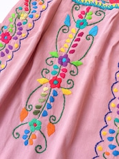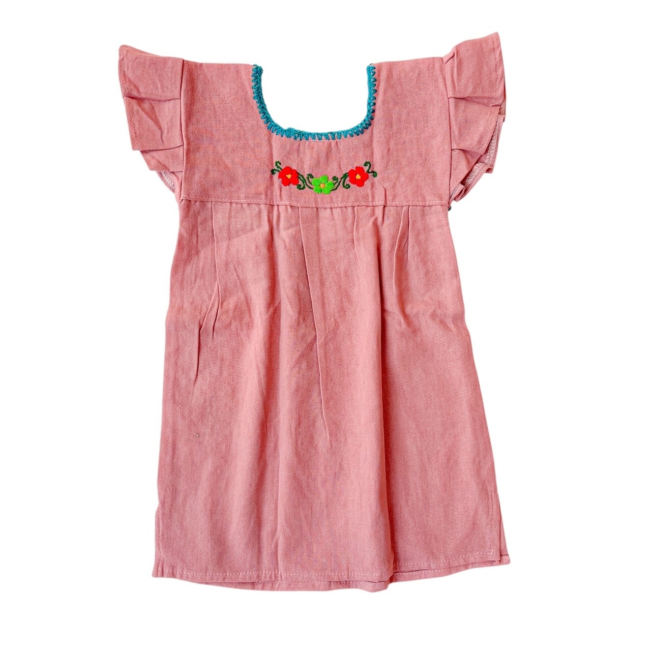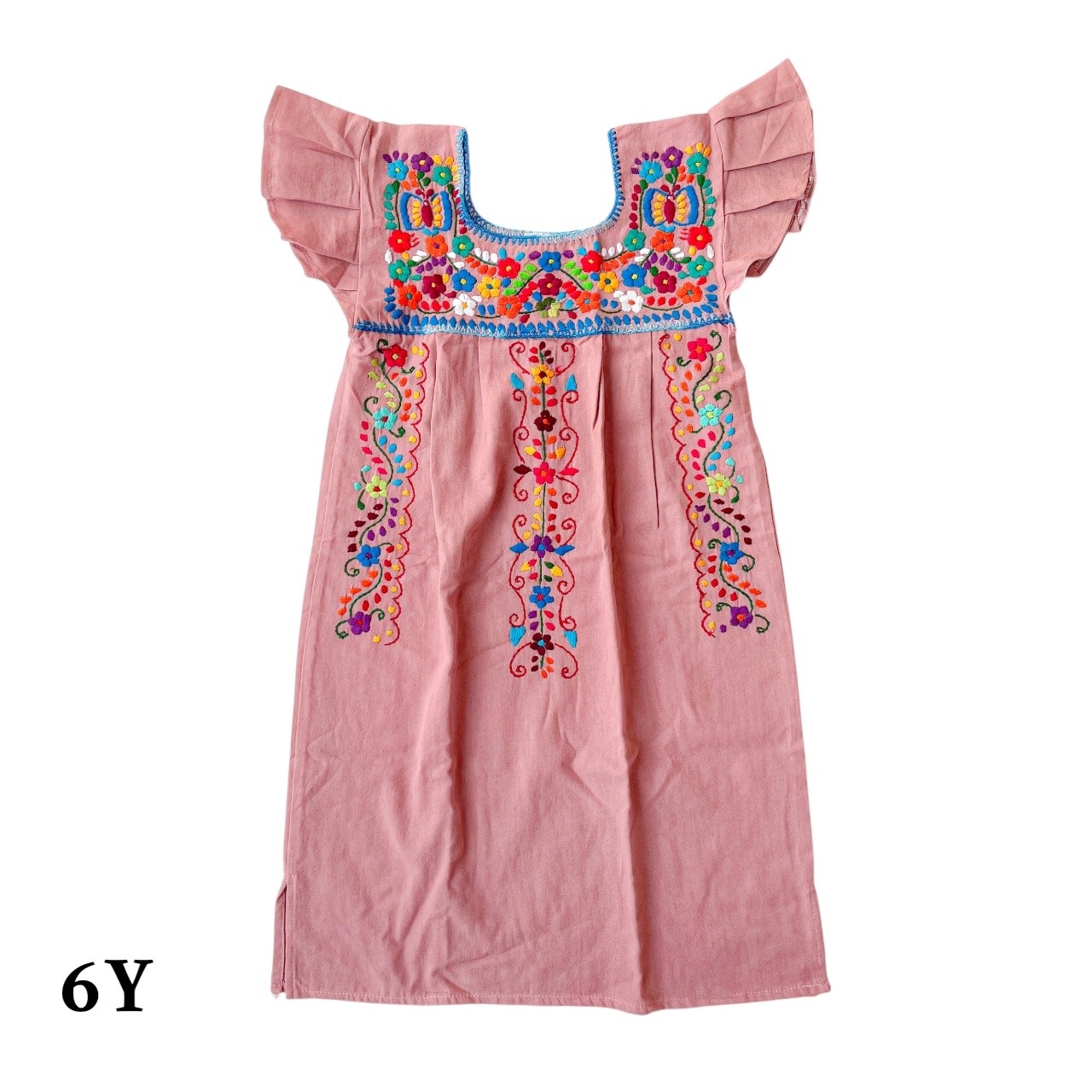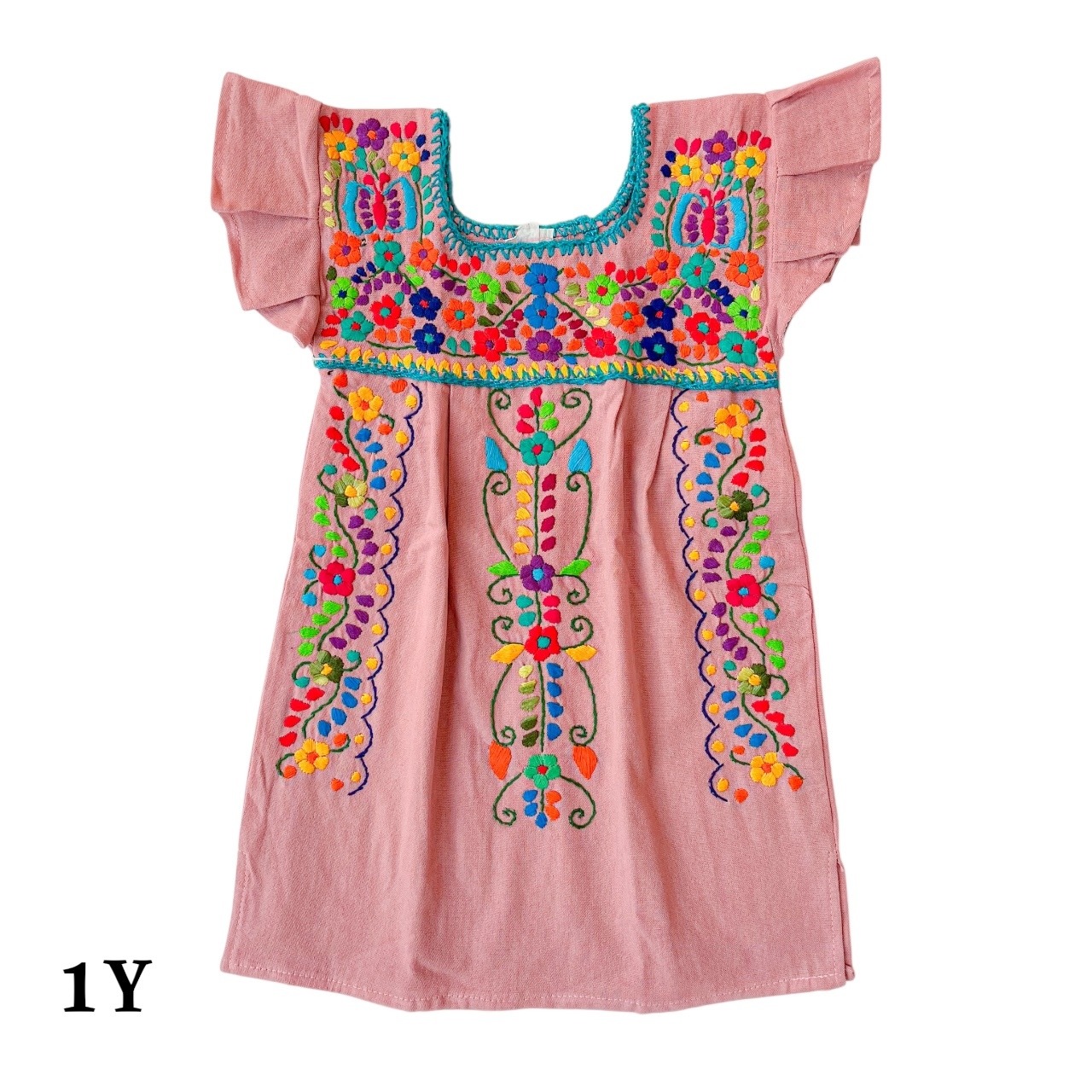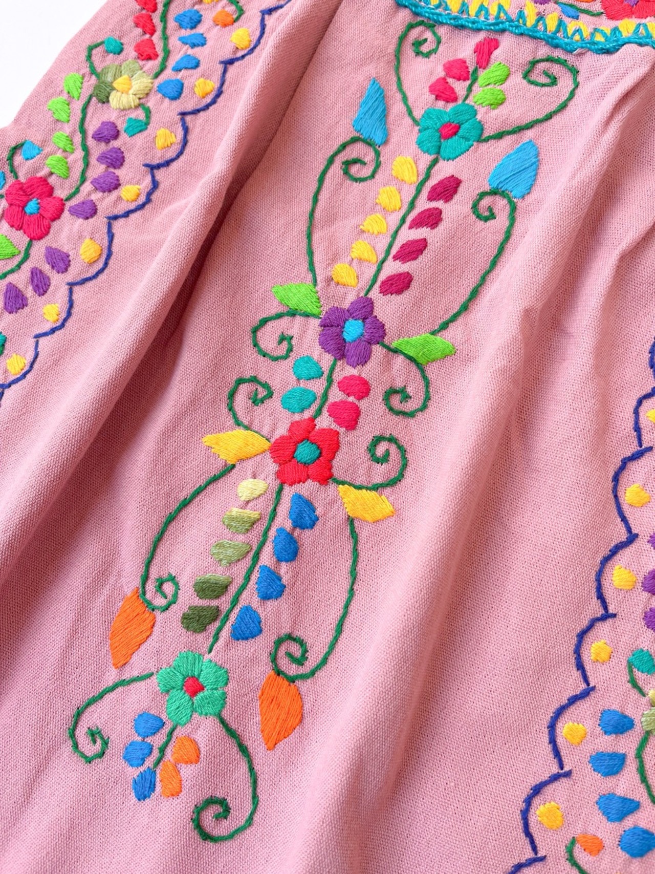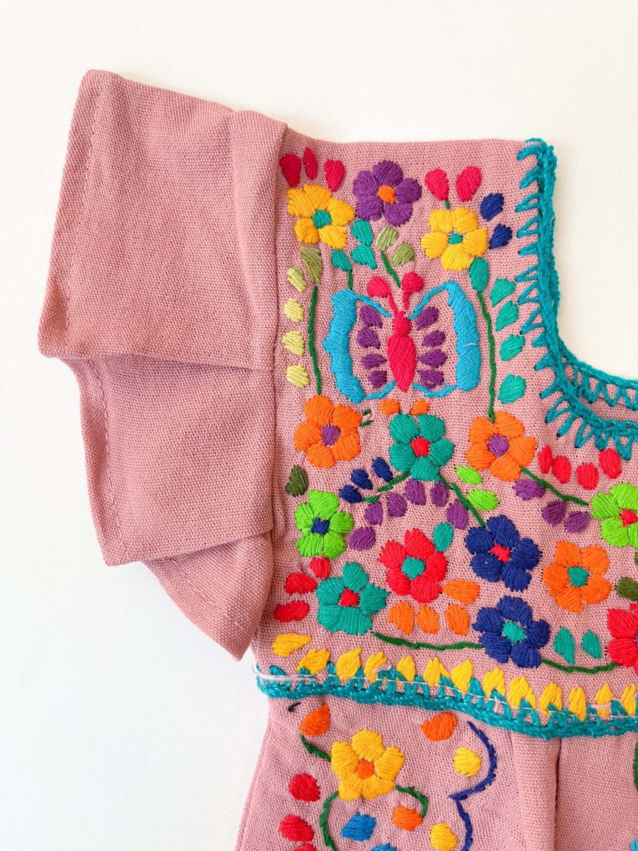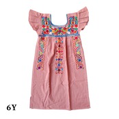 【1Y/4Y/6Y】メキシコ刺繍マリポサワンピース[ピンク]