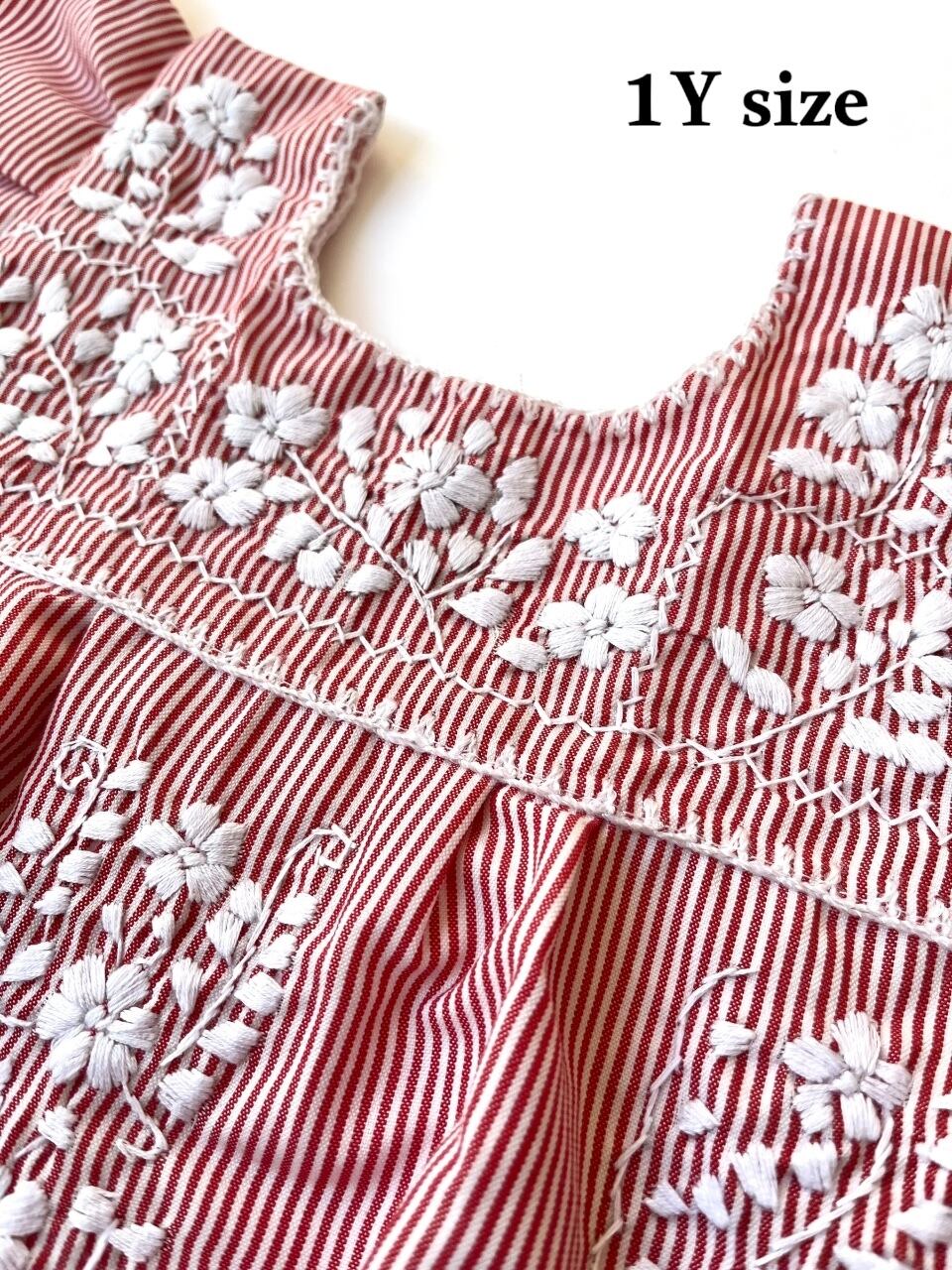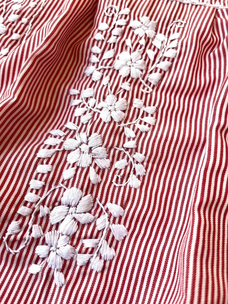 赤と白のストライプ柄が珍しいメキシコ刺繍ワンピース。