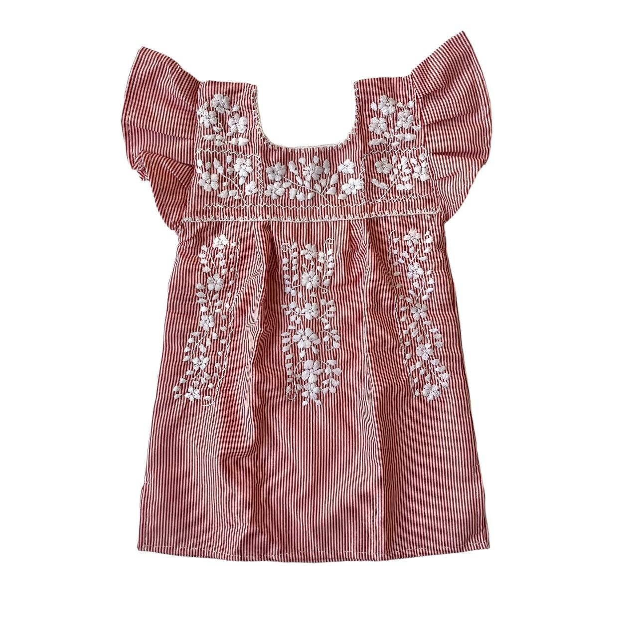 【2Y】メキシコ刺繍ストライプ柄ワンピース[レッド×ホワイト]