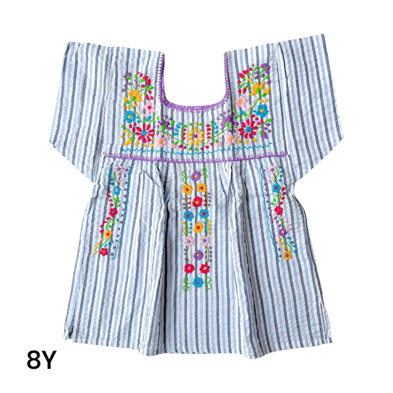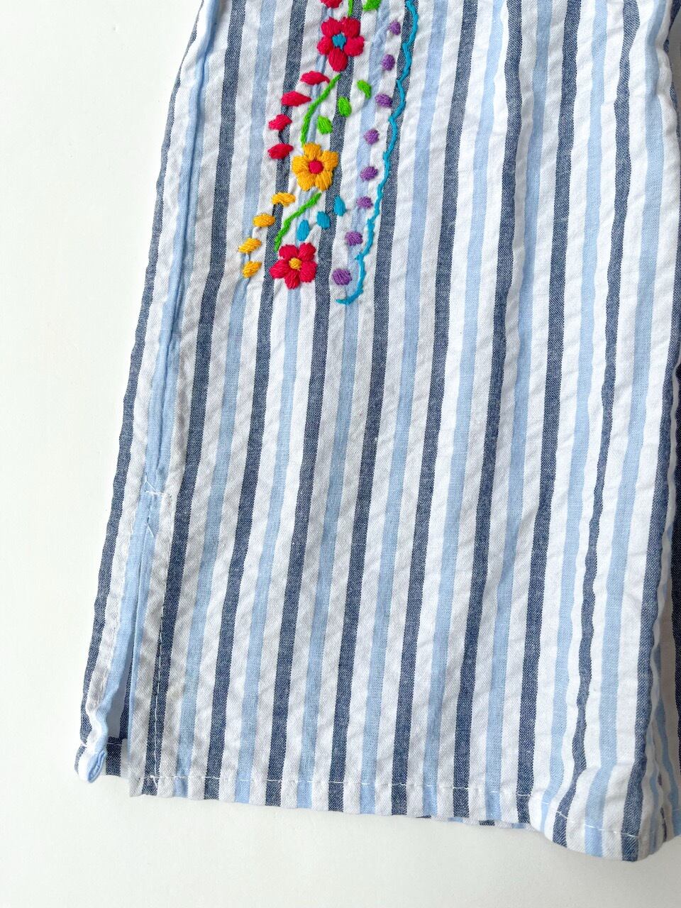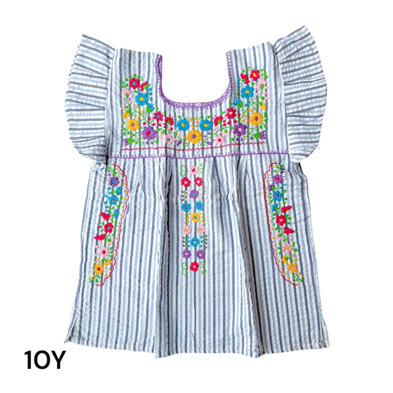 【8Y/10Y】メキシコ刺繍ストライプ柄ブラウス[ブルー×マルチカラー]